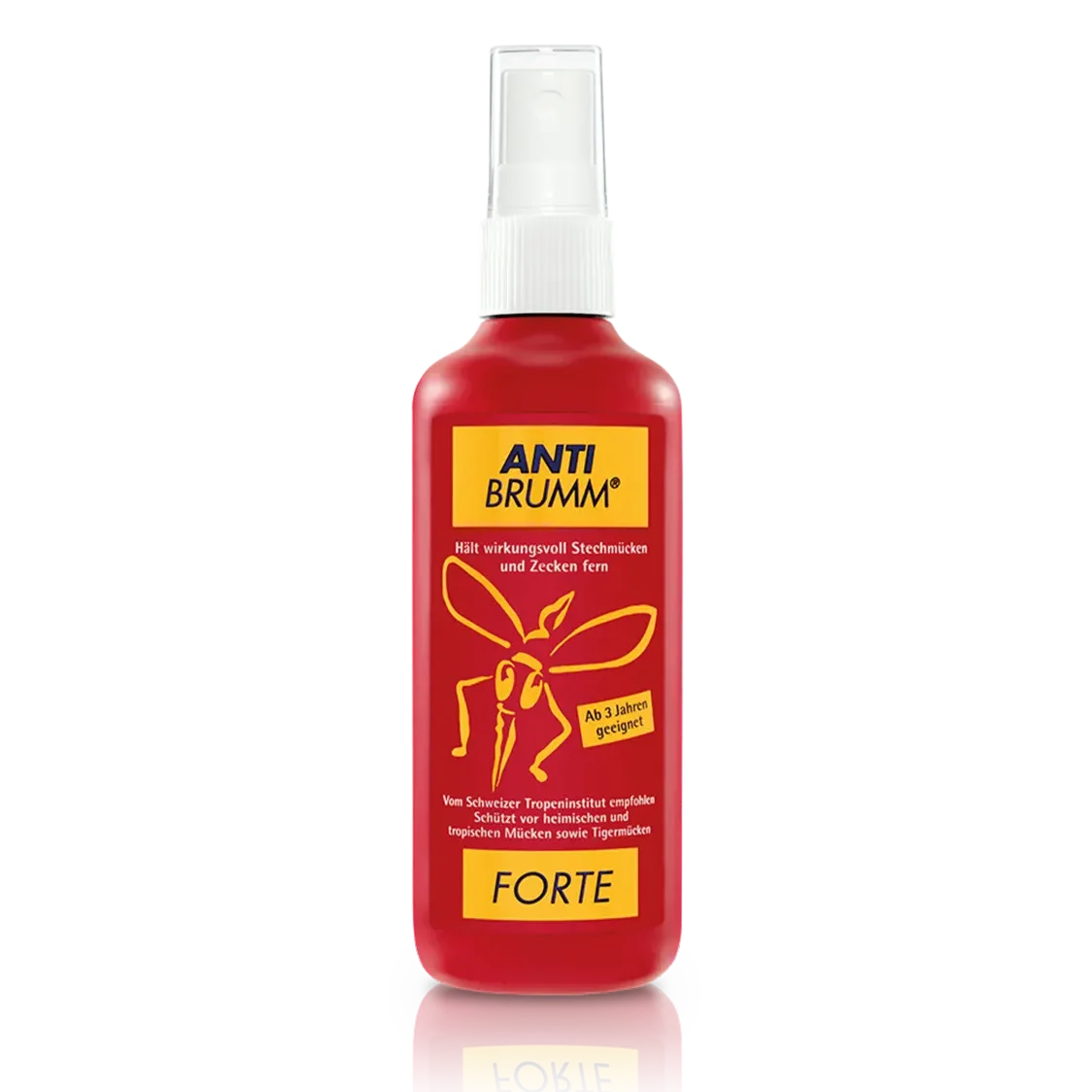 Mit dem Wirkstoff DEET, der als  einer der Goldstandards unter den Insektenschutzmitteln gilt und von der WHO auch für Tropenreisen empfohlen wird, bietet Anti Brumm® Forte zuverlässigen und langanhaltenden Mücken- und Zeckenschutz für die ganze Familie.