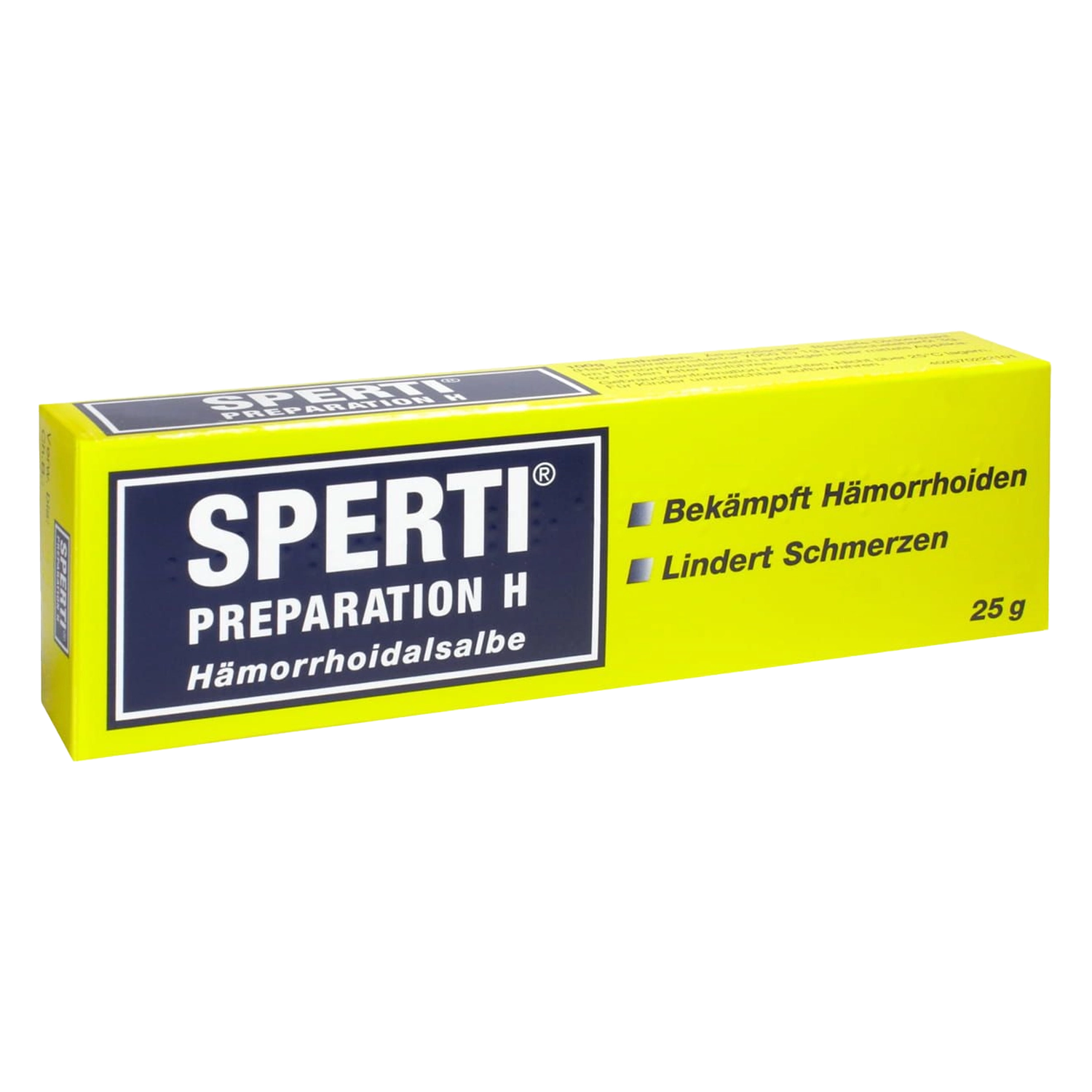SPERTI® Preparation H Hämorrhoidensalbeist ein entzündungshemmendes Arzneimittel zur Behandlung von Hämorrhoidalleiden und läßt Hämorrhoiden schrumpfen, lindert Schmerzen, beseitigt Brennen, Jucken und Stechen.